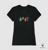 Camiseta FOLHAS COLORIDAS - PRETA - (MALHA PERUANA)